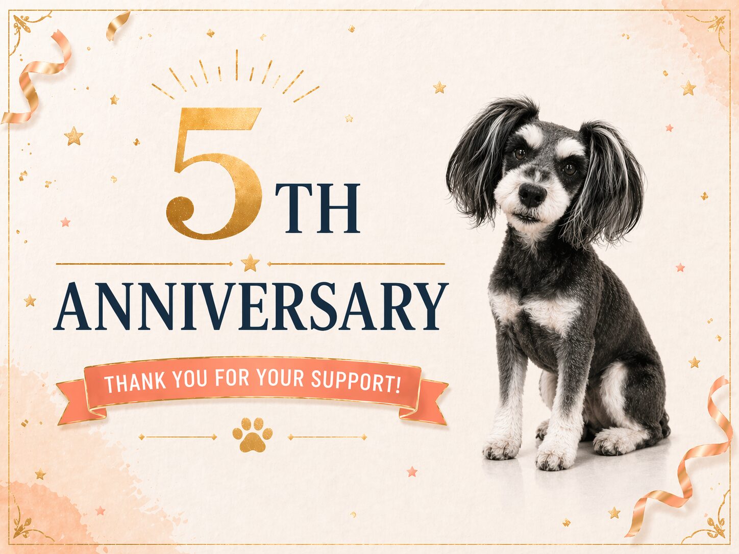 2026年4月24日の本日、Dog salon Souriqueはオープン5周年を迎える事となりました。